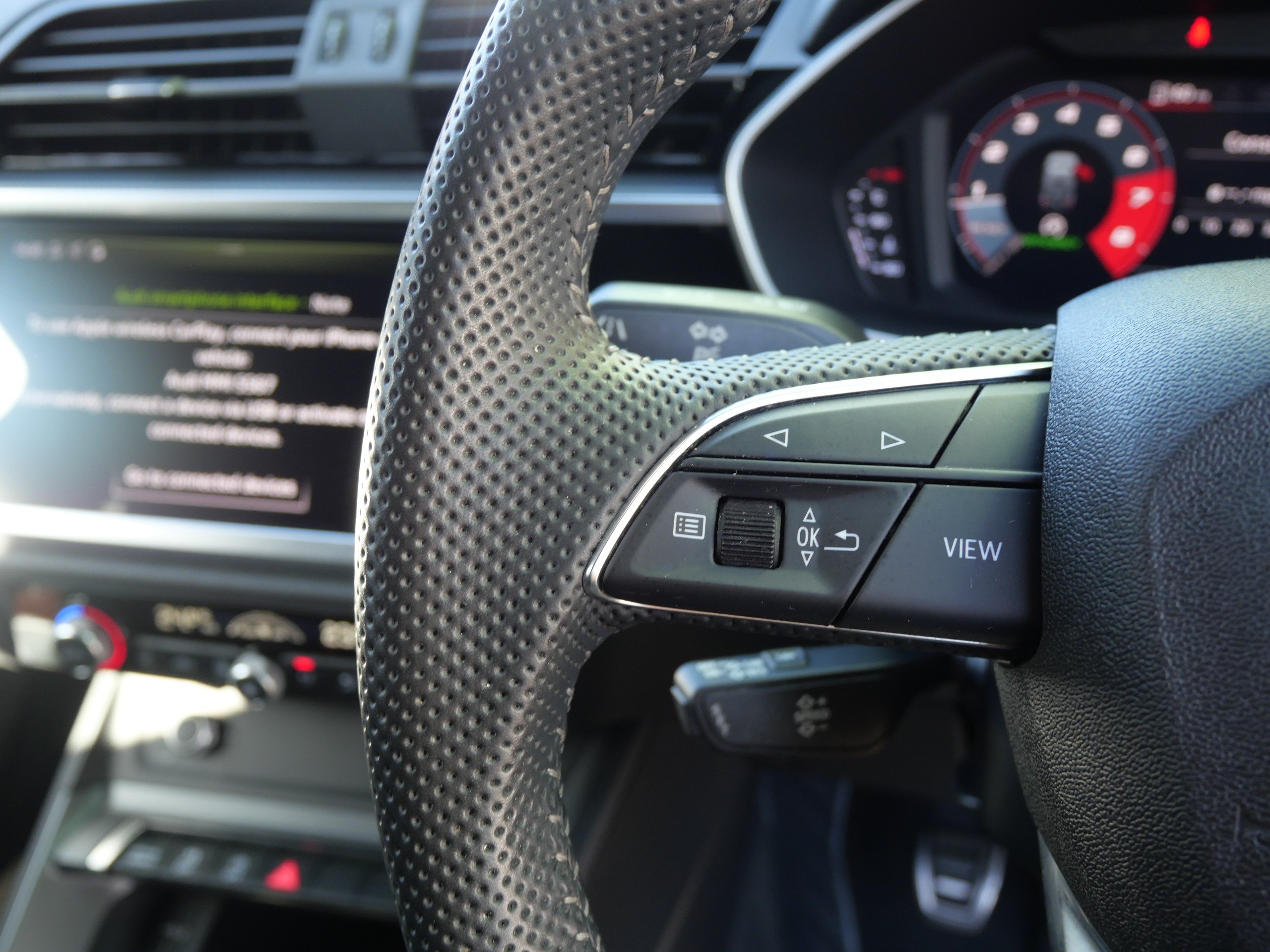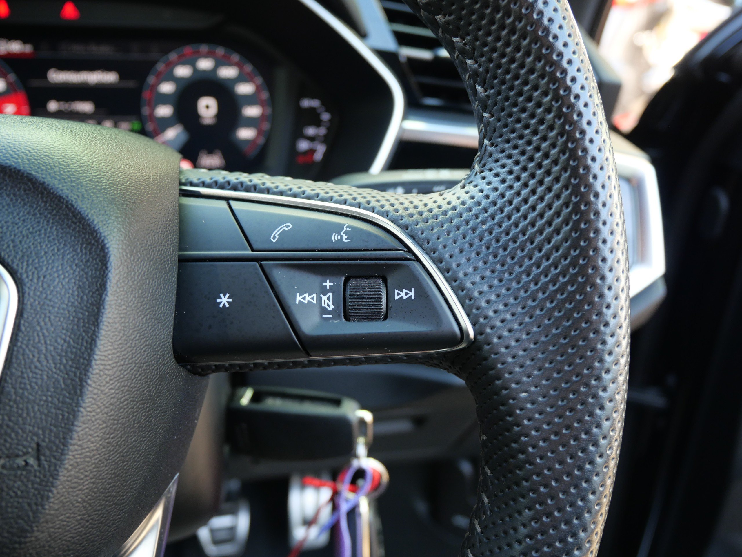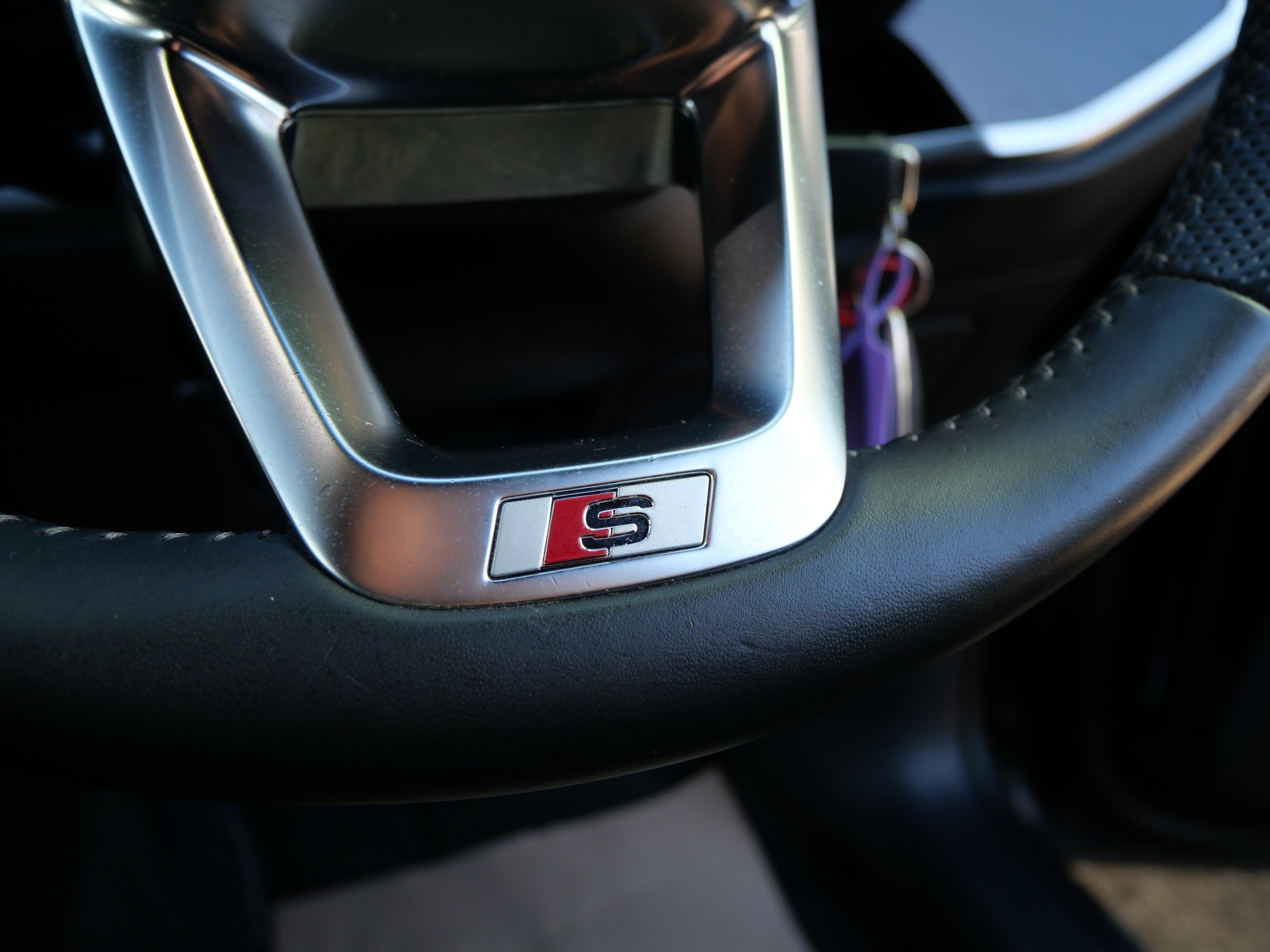 - 3-Spoke Leather Multi-Function Steering Wheel - S Badging and Grips in Perforated Leather with Contrast Stitching