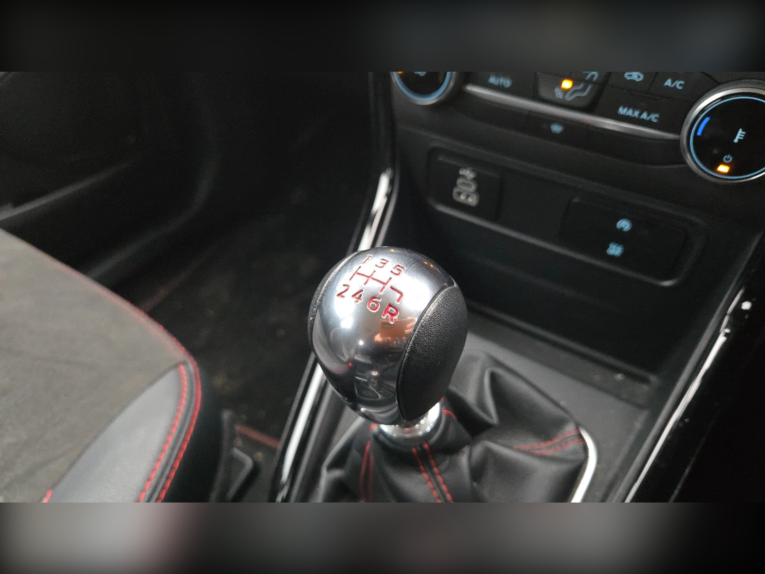 - Gearshift Knob - Leather-Trimmed with Black Insert and Aluminium-Finish Ring and Red Stitching