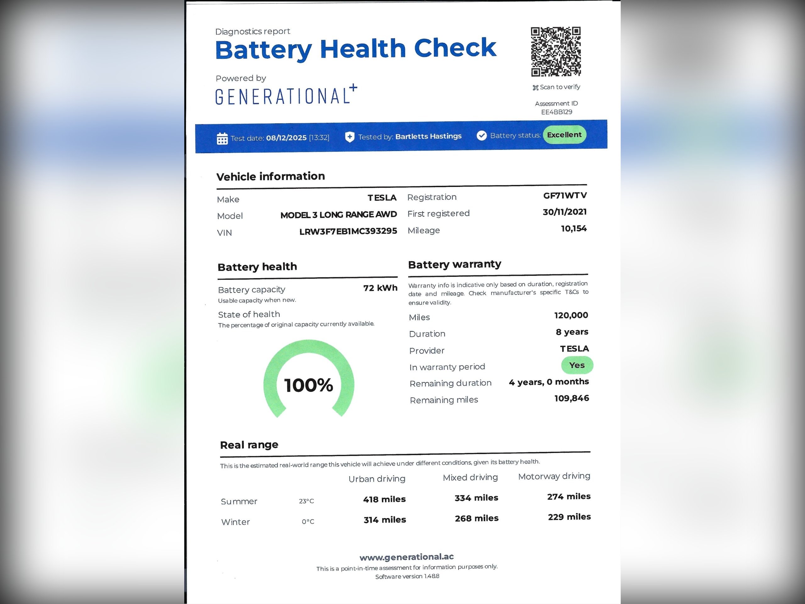 For complete peace of mind, this vehicle has had a battery health check completed, showing 100% battery health, confirming it is performing exactly as it should.